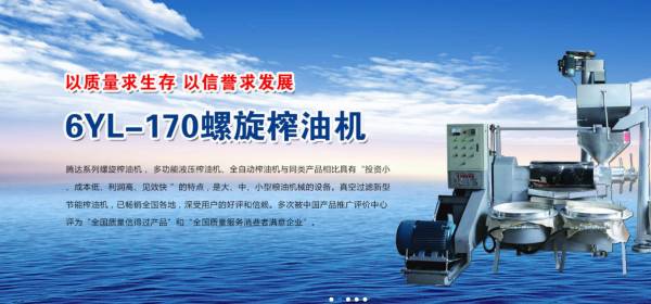 新野縣騰*機械制造有限公司多年來專業(yè)從事研究、開發(fā)、制造榨油機系列產(chǎn)品,所生產(chǎn)的系列螺旋榨油機, 多功能 液壓榨油機、全自動榨油機與同類產(chǎn)品相比具有“投 資小、成本低、利潤高、見效快 ”的特點,是大、中、小型糧油機械的設備。真空過濾新型節(jié)能榨油機,已遠銷全國各地,深受用戶的好評和信賴。多次被中國產(chǎn)品推廣評價中心評為“全國質(zhì)量信得過產(chǎn)品”和“全國質(zhì)量服務消費者滿意企業(yè)”。
