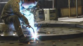公司現擁有交流焊機16臺,氬弧焊機4臺,埋弧焊機3臺,等離子焊機3臺,等離子切割機2臺,數控切割機3臺,卷板機3臺;能夠完成5mm~200mm鋼板的下料,卷板能力最大為80mm;能夠焊接碳鋼,不銹鋼,雙相鋼,鑄鋼等材料;具有超聲波、射線、磁粉、滲透等無損檢測手段,焊縫經檢測可達到NB/T47013 II級以上。所有人員都具有勞動人事部門頒發的資質,焊接工藝評定均按照JB/T4708《鋼制壓力容器焊接工藝評定》執行,并根據多年來的生產經驗,對每種材料的焊接參數進行了優化;同時采用等離子噴焊、自動埋弧焊等先進焊接技術,配合變位工作臺等焊接工裝,保證焊縫質量的同時提高了效率。可生產各類鋼板焊接閥門及管件等產品,年焊接能力1.2萬噸。